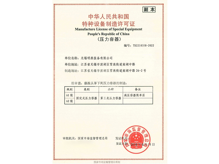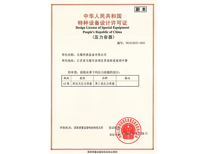 Copy right ? 2020 無(wú)錫明燕裝備有限公司具有一二三類壓力容器設(shè)計(jì)制造、ASME設(shè)計(jì)制造許可證